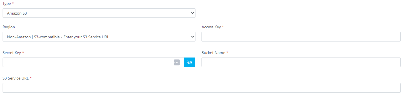 S3-compatible storage Endpoint Type has been added in the pull down of the Amazon S3 endpoint