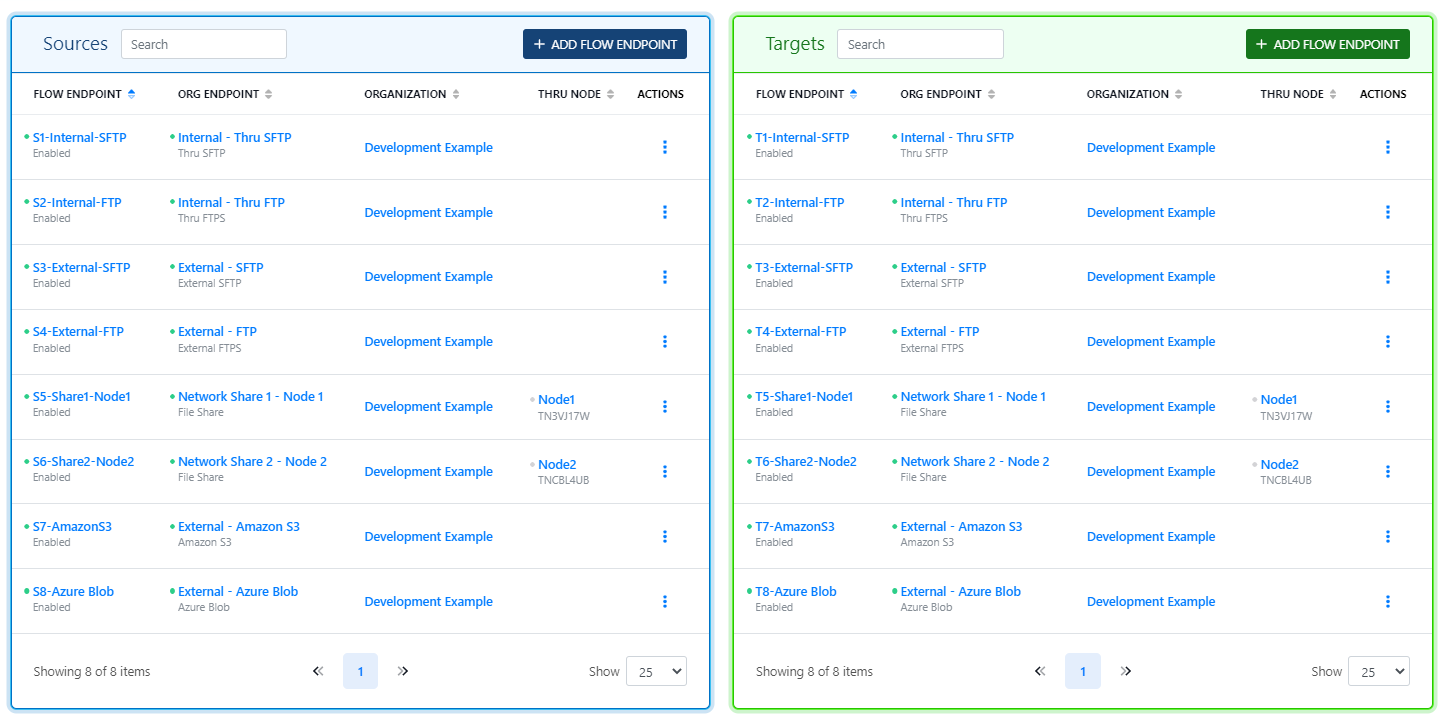 In Thru’s Flow Studio, configure multiple Organization Endpoints in any combination of one-to-one, one-to-many, many-to-one, or even many-to-many.