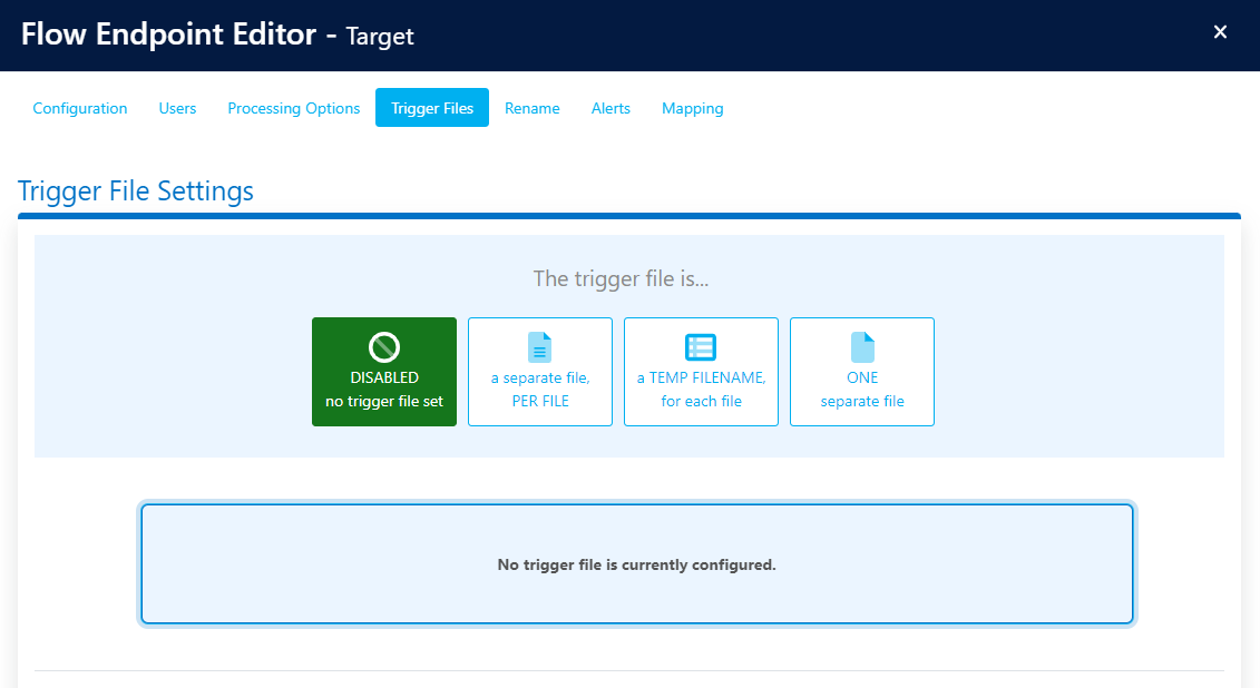 By default, trigger files are disabled, meaning no trigger file settings exist.