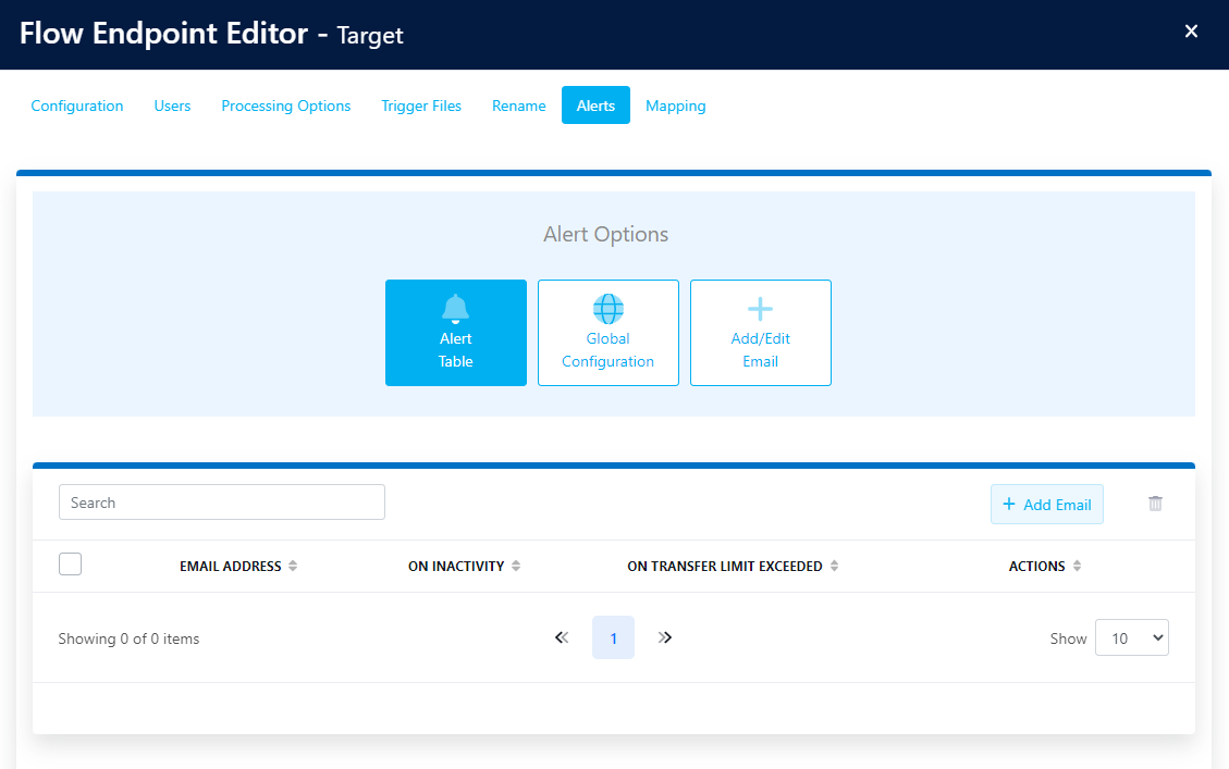 Click the Actions icon next to your Thru FTPS endpoint. Select Edit Flow Endpoint Settings. Click the Alerts tab.