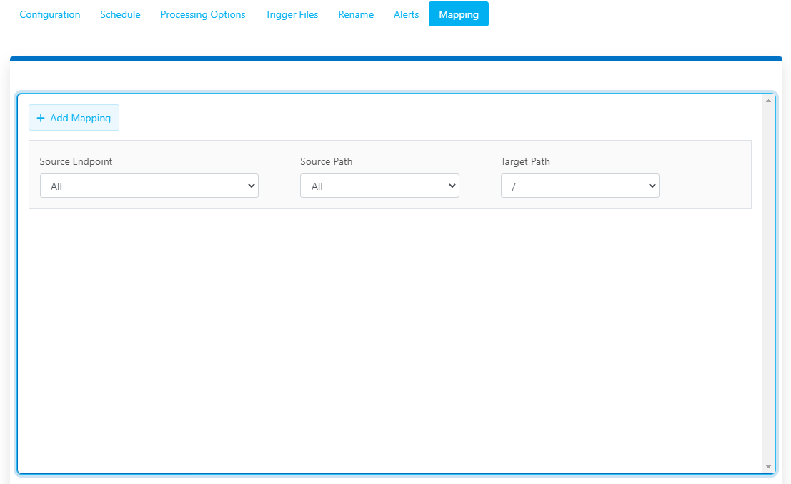 The mapping tab only appears in Target Flow Endpoints, It is used to mapped source folders to target folders.
