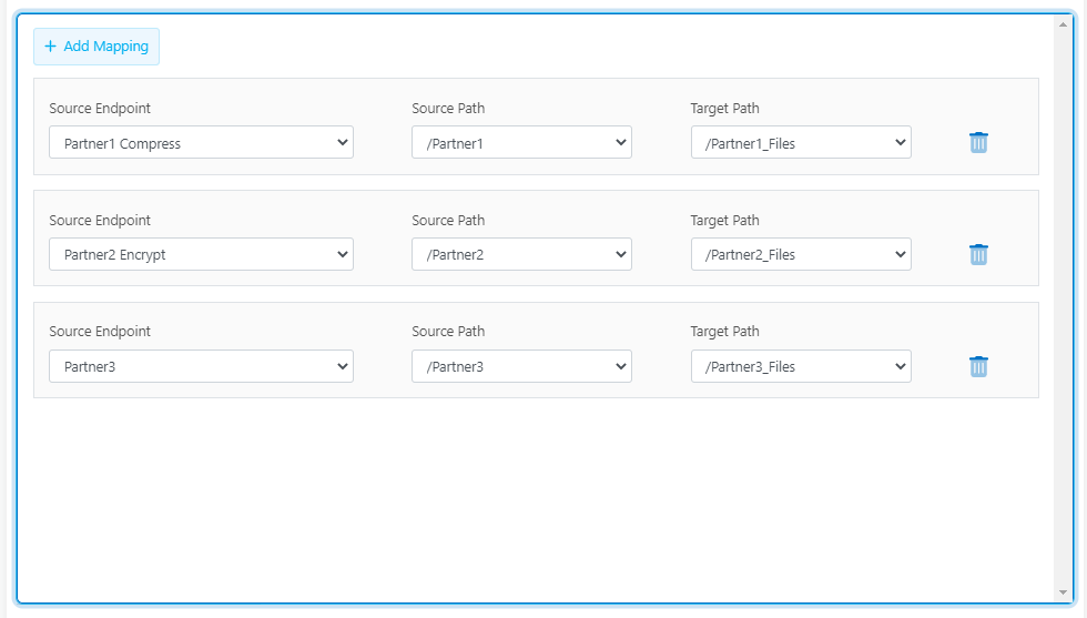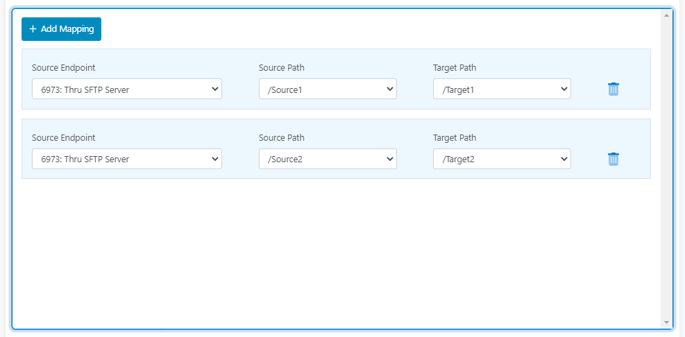 In this simple example we have a source endpoint with two source paths that is then mapped to a target endpoint with two target paths.