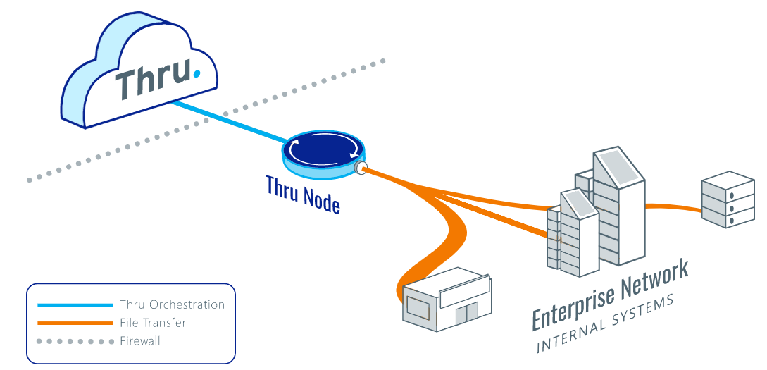 The Thru Node serves as a runtime environment, enabling Thru Cloud to effectively coordinate the node's actions, granting direct access to local folders and directory structures within a local area network through the creation of a File Share endpoint or to any other external endpoint type.