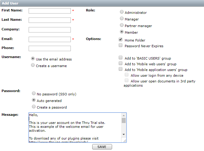 Add to ‘Mobile web users’ group: Adding the user to the Mobile web users group enables them to access the Thru site via mobile web browsers.