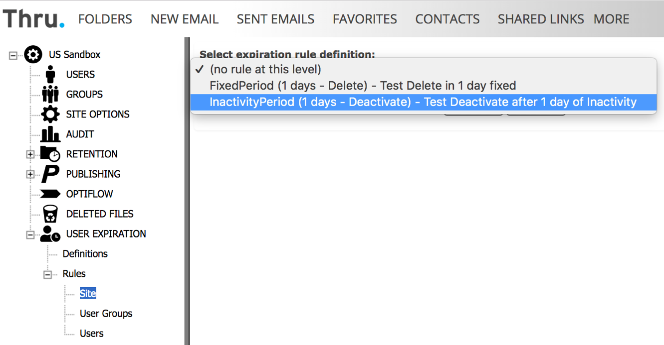 Administration -> User Expiration -> Rules -> Site.