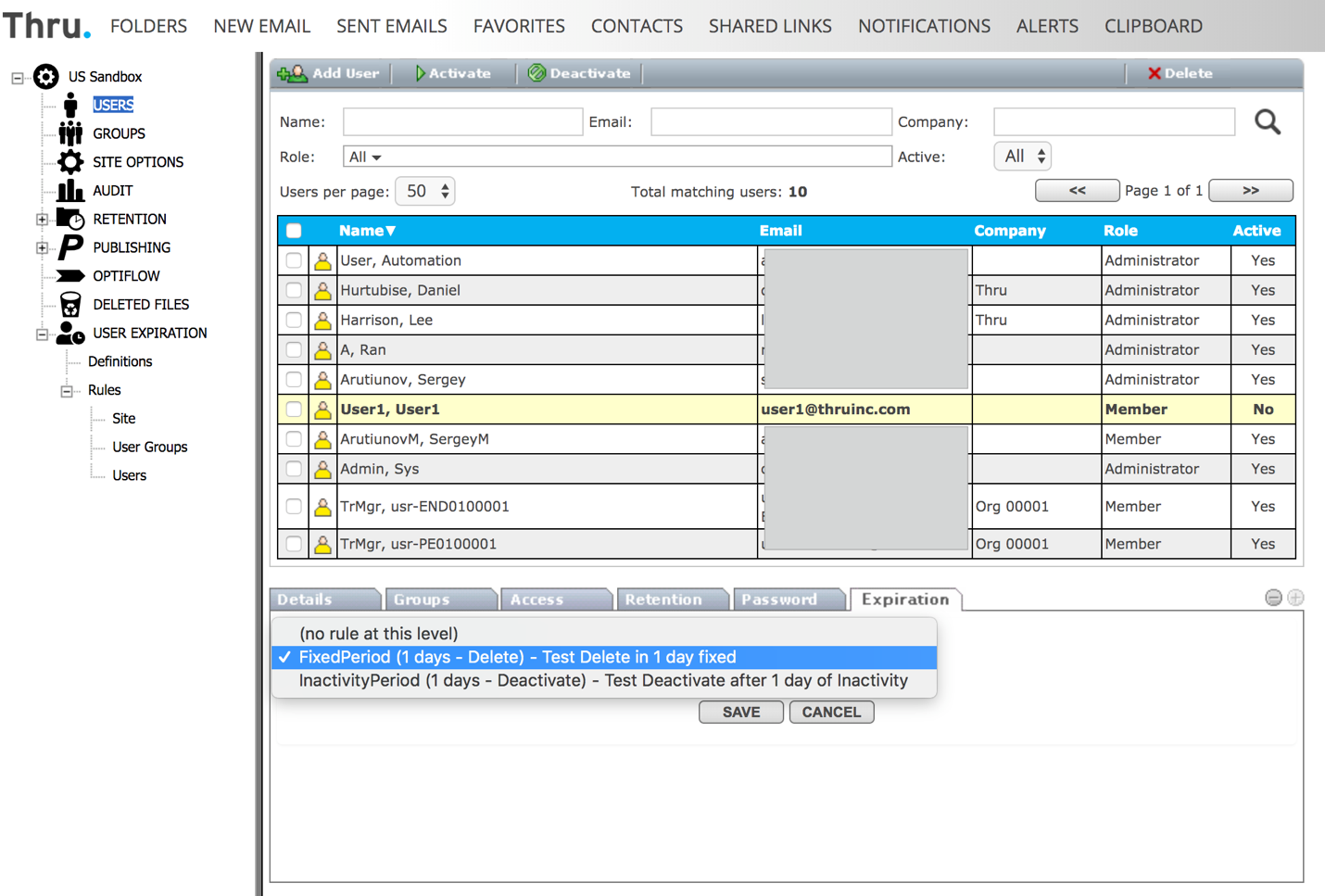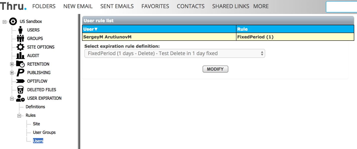 User rules are listed under Administration->User Expiration->Rules->Users where administrators can view and manage the rules: