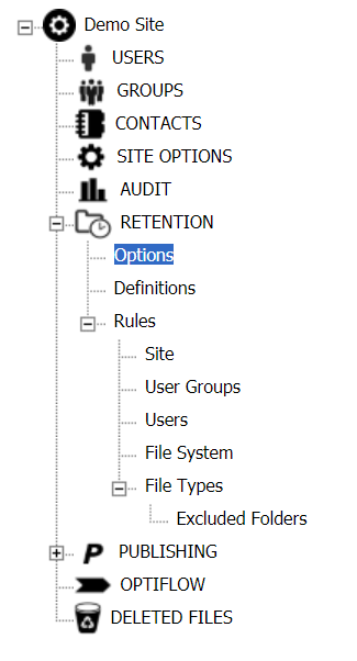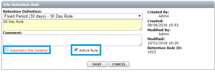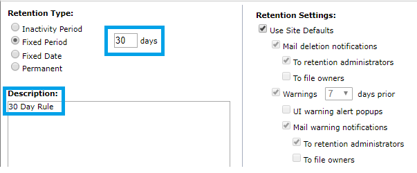 In the following example, we create a 30-day retention definition that we will apply to the site level rule.