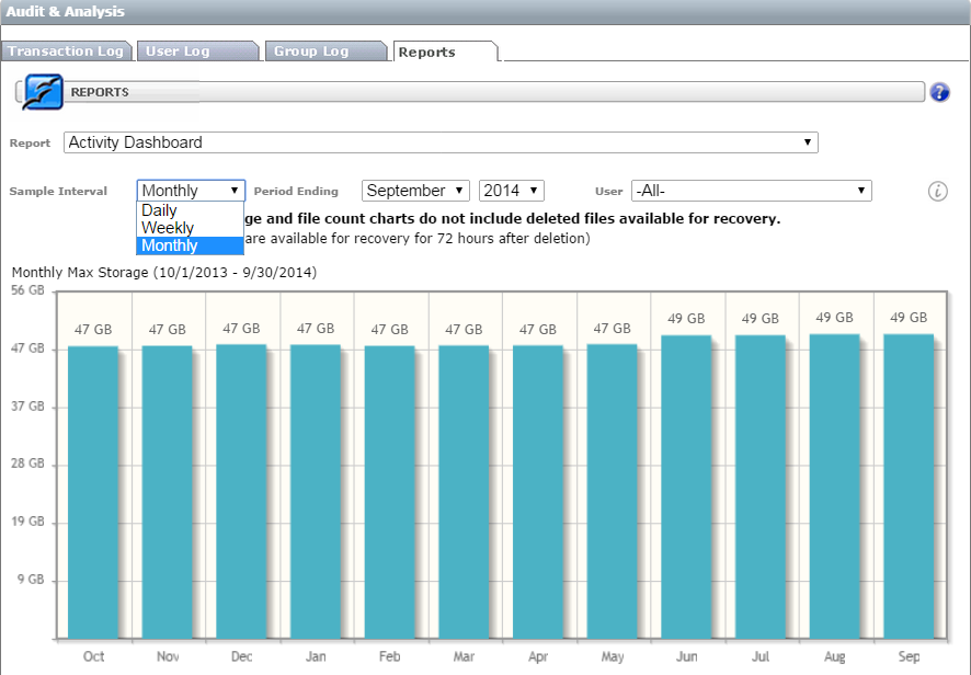 These reports can further be narrowed down by selecting to display them by daily, weekly or monthly intervals.