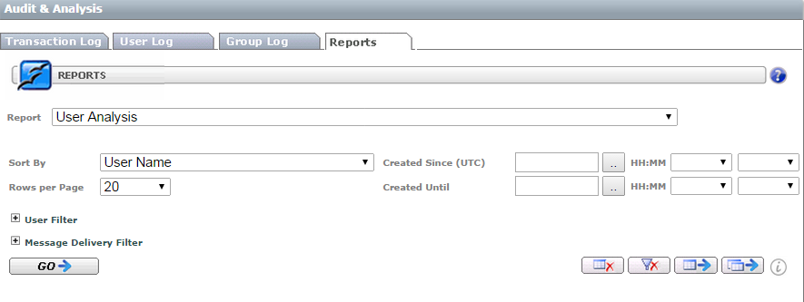 Select User Analysis from the Report drop-down list to perform user analysis.