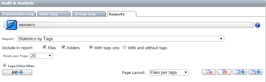 Select the Statistics by Tags report to run reports on files and folders based on their tags that have been added.