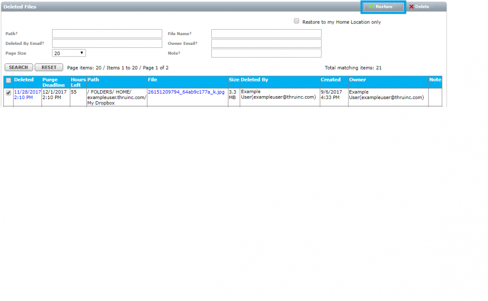 Note that when files are deleted by the retention service, restoring them to the original location might be useless because the files will be deleted again on the next retention cycle.