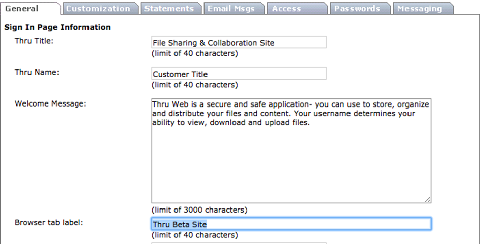 Custom field in the Admin page. Default is Thru Portal