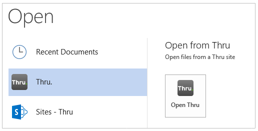The add-in is compatible with Microsoft Word, Excel, and PowerPoint, enabling you to edit documents stored in Thru or create new files and save them to Thru.