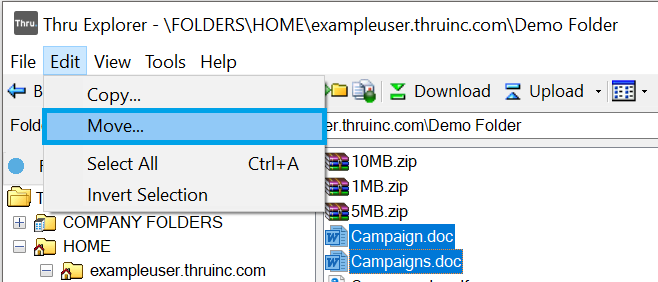Moving Files and Folders in Thru Explorer