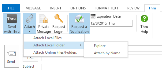 Example 2: Send email attachments of any size using Thru's email client add-ins for Microsoft Outlook.