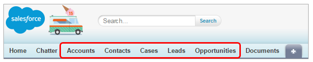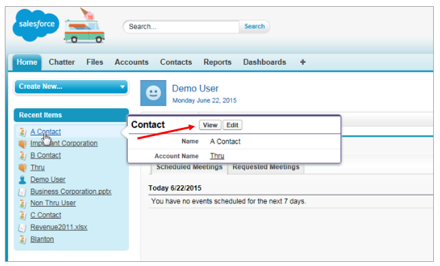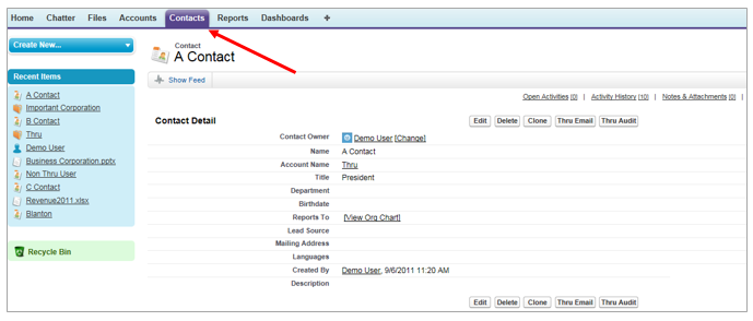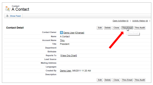 Select an individual Contact, Case, Lead, or Opportunity to access the Thru Email button.
