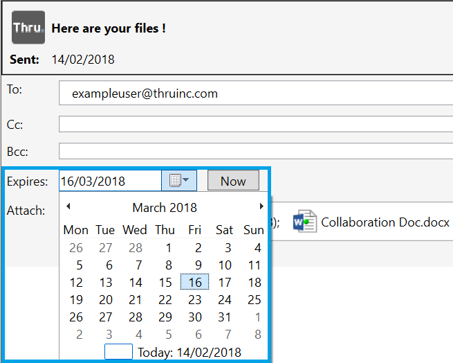 Click the drop-down arrow next to Expires in the Edit Thru message window and choose a date from the calendar.