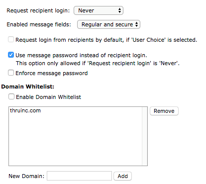 If email is sent to a recipient list where all recipients are on the whitelist, password will not be requested even if enforced policy is enabled.