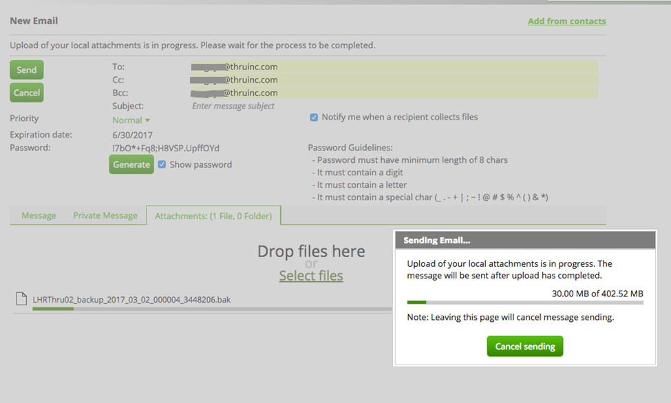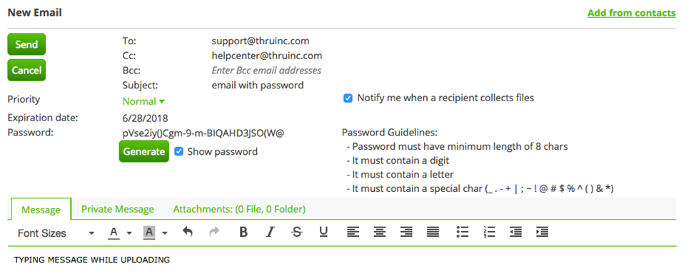 EMAIL CAN BE EDITED WHILE FILES ARE BEING UPLOADED, PASSWORD GENERATOR IN PER-MESSAGE PASSWORD MODE