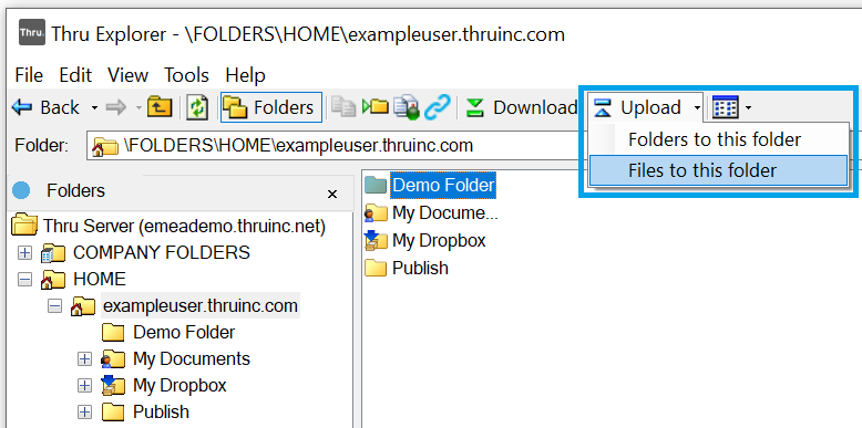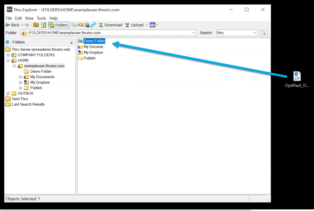 - Drag and drop the file into the file view of Thru Explorer to start the Thru Transfer Manager and upload the file.