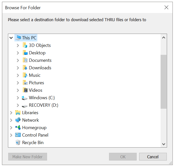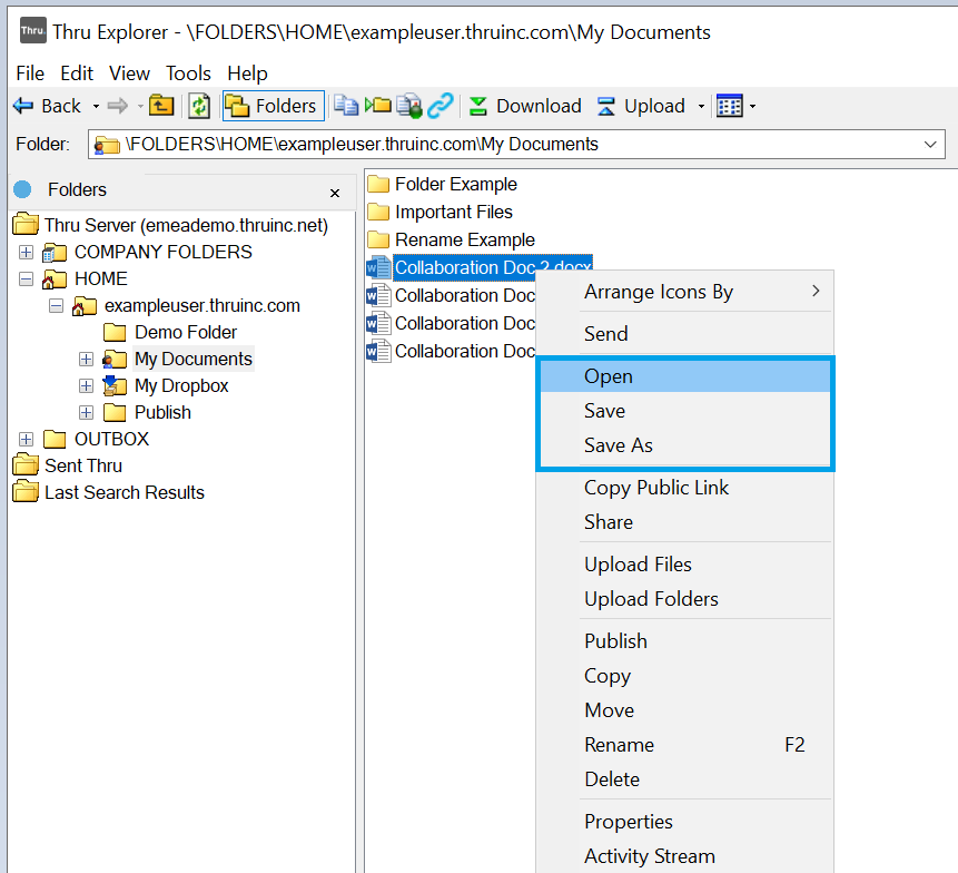 - Save As: To download selected Thru files or folders to a particular destination folder, select Save As.