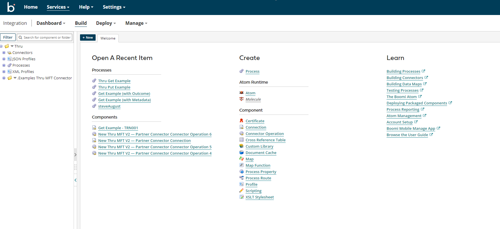 The navigation experience in Boomi Integration is tailored for you to quickly access the different phases of the integration lifecycle.