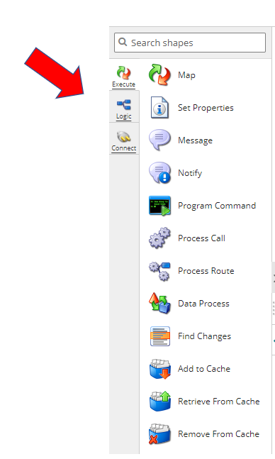 Connect — Shapes that get data into or send data out of the process using one of the application or technology connectors.